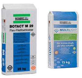 Przy klejeniu płytek na tarasach muszą być spełnione dwa warunki: klej powinien posiadać odpowiednią elastyczność i płytki muszą być ułożone bez pustek powietrznych w zaprawie. Do tego celu służą zaprawy o konsystencji rozpływnej BOTACT® M 29 i MULITILIGHT. Oba produkty spełniają wszystkie wymogi stawiane zaprawom klejowym stosowanym na zewnątrz.