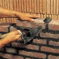 Murowanie i spoinowanie w jednym cyklu roboczym. Powierzchnię spoiny wygładzić uszczelniając, w zależności od ukształtowania uzyskując gładką lub rustykalną, szorstką powierzchnię.